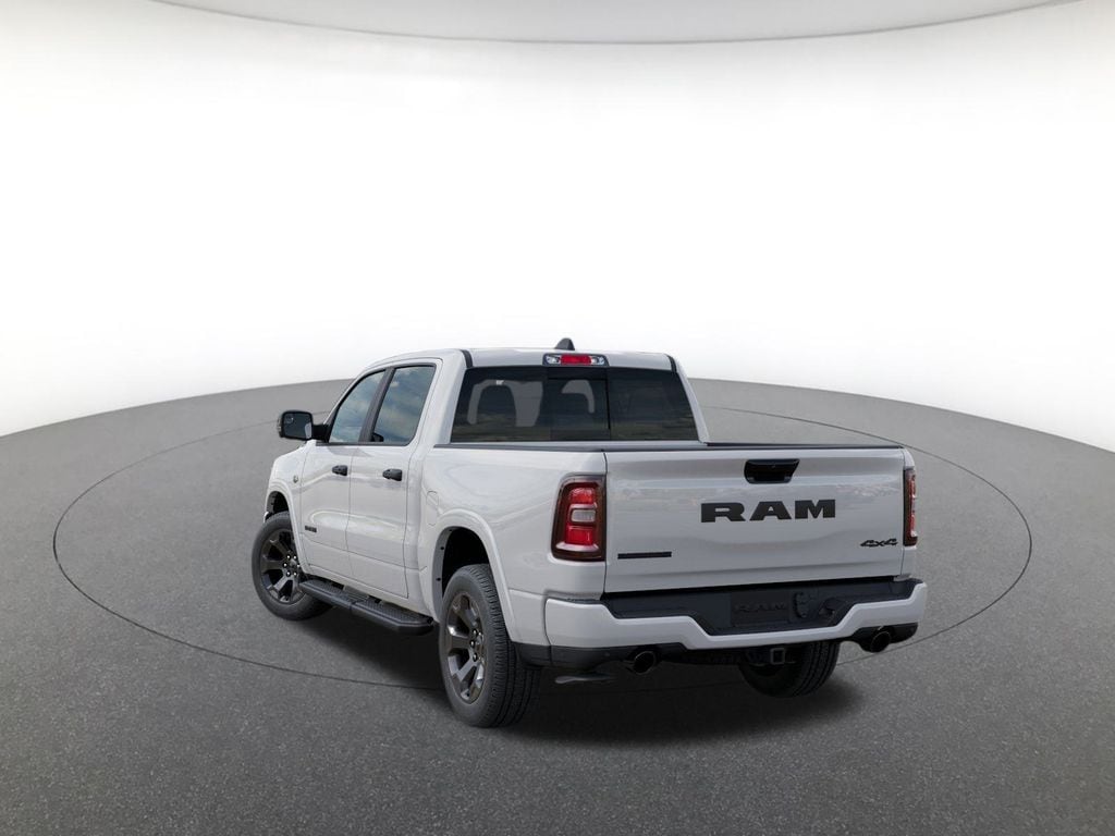 Bed Utility Group (Exterior 115V AC Outlet, MOPAR 4 Adjustable Cargo Tie-Down Hooks, MOPAR Spray in Bedliner, and Pick-Up Box Lighting), Big Horn Level 1 Equipment Group (115V Auxiliary Power Outlet, 2nd Row in Floor Storage Bins, 3 Rear Seat Head Restraints, 4 Way Front Headrests, 400W Inverter, Auto Power-Folding Mirrors, Auto-Dimming Exterior Driver Mirror, Auto-Dimming Rear-View Mirror, Black Exterior Mirrors, Black Premium Power Mirrors, Body Color Fender Flares, Bucket Seats, Center Console Parts Module, Convex Wide-Angle Exterior Mirror Insert, Deluxe Cloth Bucket Seats, Exterior Mirrors Courtesy Lamps, Exterior Mirrors with Heating Element, Exterior Mirrors with Supplemental Signals, Front Seat Back Map Pockets, Full Length Floor Console, Glove Box Lamp, Heated Front Seats, Heated Steering Wheel, Leather Wrapped Steering Wheel, Manual Adjust 4-Way Front Passenger Seat, Power 2-Way Driver Lumbar Adjust, Power Adjust 8-Way Driver Seat, Power Adjustable Pedals, Rear 60/40 Folding Seat, Rear Center Armrest, Rear Dome with on/Off Switch Lamp, Rear Power Sliding Window, Rear Window Defroster, SiriusXM Radio Service, SiriusXM Satellite Radio, Steering Wheel Mounted Audio Controls, Sun Visors with Illuminated Vanity Mirrors, and Universal Garage Door Opener), Night Edition (Accent Color Door Handles, Accent Color Premium Power Mirrors, Accent Color Tailgate Handle, Anti-Spin Differential Rear Axle, Black Exterior Truck Badging, Black Headlamp Bezels, Black Interior Accents, Black Painted Exterior Mirrors Caps, Black Tail Lamp Bezels, Body Color Front Bumper, Body Color Rear Bumper with Step Pads, Dual Exhaust with Black Tips, Grille Black Surround Black Mesh, RAM Grille Badge - Black, and Wheels: 20" x 9.0" Aluminum Painted Clad), Quick Order Package 27Z Big Horn, 4-Wheel Disc Brakes, 48V Belt Starter Generator, 4G LTE Wi-Fi Hot Spot, 6 Speakers, ABS brakes, Air Conditioning, Alloy wheels, AM/FM radio, Apple CarPlay, Apple CarPlay/Android Auto, Auto High-beam Headlights, Brake assist, Bumpers: chrome, Cloth Bucket Seats, Compass, Connectivity - US/Canada, Delay-off headlights, Driver door bin, Dual front impact airbags, Dual front side impact airbags, Electronic Stability Control, Front anti-roll bar, Front Bucket Seats, Front Center Armrest w/Storage, Front fog lights, Front License Plate Bracket, Front reading lights, Front wheel independent suspension, Fully automatic headlights, Global Telematics Box Module, Google Android Auto, GPS Antenna Input, Heated door mirrors, Illuminated entry, Integrated Center Stack Radio, Integrated Voice Command with Bluetooth, Low tire pressure warning, Manual Adjust 4-Way Driver Seat, Manual Folding Exterior Mirrors, Mopar Black Tubular Side Step
