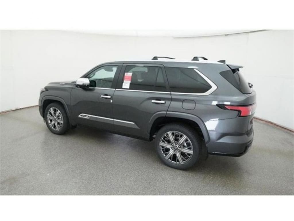 V6 Hybrid, 10-Speed Automatic, 4WD, 14 Speakers, 3rd row seats: split-bench, 4-Wheel Disc Brakes, ABS brakes, Air Conditioning, Alloy wheels, AM/FM radio: SiriusXM, Anti-whiplash front head restraints, Apple CarPlay/Android Auto, Auto High-beam Headlights, Auto tilt-away steering wheel, Auto-dimming door mirrors, Auto-dimming Rear-View mirror, Automatic temperature control, Brake assist, Bumpers: body-color, Compass, Delay-off headlights, Driver door bin, Driver vanity mirror, Dual front impact airbags, Dual front side impact airbags, Electronic Stability Control, Emergency communication system: Safety Connect (10-year trial), Exterior Parking Camera Rear, Front anti-roll bar, Front Bucket Seats, Front Center Armrest w/Storage, Front dual zone A/C, Front fog lights, Front reading lights, Front wheel independent suspension, Fully automatic headlights, Garage door transmitter: HomeLink, Genuine wood door panel insert, Headlight cleaning, Heads-Up Display, Heated and Ventilated Front Seats, Heated door mirrors, Heated front seats, Heated rear seats, Heated steering wheel, Illuminated entry, Knee airbag, Leather Seat Trim, Leather Shift Knob, Leather steering wheel, Low tire pressure warning, Memory seat, Navigation system: Drive Connect (1 year trial) includes Cloud Navigation with real time traffic and Google POI, Occupant sensing airbag, Outside temperature display, Overhead airbag, Overhead console, Panic alarm, Passenger door bin, Passenger vanity mirror, Power door mirrors, Power driver seat, Power Liftgate, Power moonroof, Power passenger seat, Power steering, Power windows, Premium audio system: JBL, Radio: 14" Toyota Audio Multimedia with JBL Premium Audio, Rain sensing wipers, Rear air conditioning, Rear reading lights, Rear seat center armrest, Rear window defroster, Rear window wiper, Reclining 3rd row seat, Remote keyless entry, Security system, Speed control, Speed-sensing steering, Split folding rear seat, Spoiler, Sport steering wheel, Steering wheel mounted audio controls, Tachometer, Telescoping steering wheel, Tilt steering wheel, Traction control, Trip computer, Turn signal indicator mirrors, Variably intermittent wipers, Ventilated front seats, Ventilated rear seats, Voltmeter, and Wheels: 22" Dark Chrome Machined-Finish Alloy. *Every Internet Price includes current applicable incentives. Some incentives may require financing through the manufacturer's finance company on approved credit. Some manufacturer incentives may not be combined with special APR. You may also qualify for additional manufacturer incentive programs (E.G., College graduate, owner loyalty, and military). See dealer for more details about these programs. Your additional costs are sales tax, tag and title fees for the state in which the vehicle will be registered, any dealer-installed options, and a $995 dealer processing fee (North Carolina). Prices are subject to change, and prior sales are excluded. While every reasonable effort is made to ensure the accuracy of this information, we are not responsible for any errors or omissions contained on these pages. Please verify any information in question with the dealer.