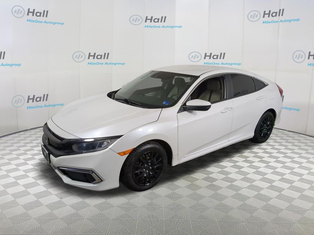 White 2019 Honda Civic LX FWD CVT 2.0L I4 DOHC 16V i-VTEC Parchment Cloth.