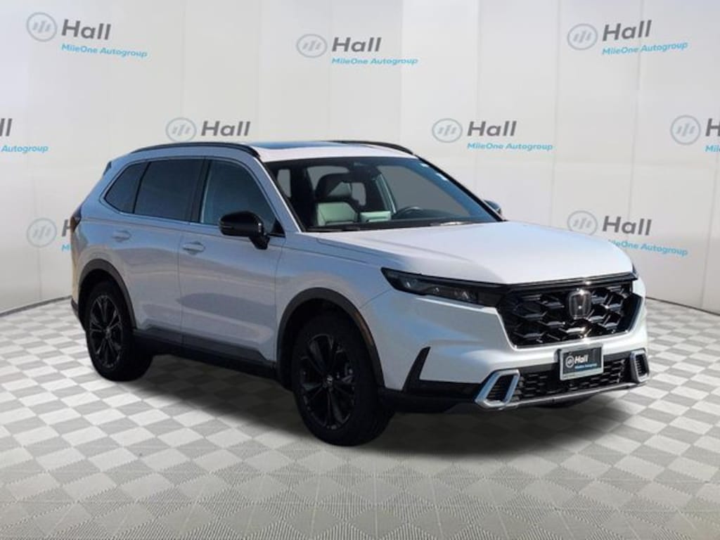 Clean CARFAX. White 2024 Honda CR-V Hybrid Sport Touring AWD eCVT 2.0L I4 DOHC 16V We are currently offering Vehicle Purchase Home Delivery by appointment. Please contact for details., 2.0L I4 DOHC 16V, 12 Speakers, 4-Wheel Disc Brakes, 4.438 Axle Ratio, ABS brakes, Adaptive Cruise Control: Adaptive Cruise Control (ACC) with Low-Speed Follow, Air Conditioning, Alloy wheels, AM/FM radio: SiriusXM, Auto High-beam Headlights, Auto-dimming Rear-View mirror, Automatic temperature control, Blind Spot Information (BSI) System warning, Brake assist, Bumpers: body-color, Compass, Delay-off headlights, Driver door bin, Driver vanity mirror, Dual front impact airbags, Dual front side impact airbags, Electronic Stability Control, Exterior Parking Camera Rear, Four wheel independent suspension, Front anti-roll bar, Front Bucket Seats, Front Center Armrest, Front dual zone A/C, Front reading lights, Fully automatic headlights, Heated door mirrors, Heated Front Bucket Seats, Heated front seats, Heated steering wheel, Illuminated entry, Knee airbag, Leather Seat Trim, Leather Shift Knob, Leather steering wheel, Low tire pressure warning, Memory seat, Navigation system: Honda Satellite-Linked Navigation System, Occupant sensing airbag, Outside temperature display, Overhead airbag, Overhead console, Panic alarm, Passenger door bin, Passenger vanity mirror, Power door mirrors, Power driver seat, Power Liftgate, Power moonroof, Power passenger seat, Power steering, Power windows, Radio data system, Radio: Bose Premium Sound System w/Navigation, Rain sensing wipers, Rear anti-roll bar, Rear reading lights, Rear seat center armrest, Rear side impact airbag, Rear window defroster, Rear window wiper, Remote keyless entry, Security system, Speed control, Speed-sensing steering, Speed-Sensitive Wipers, Split folding rear seat, Spoiler, Steering wheel mounted audio controls, Telescoping steering wheel, Tilt steering wheel, Traction control, Trip computer, Turn signal indicator mirrors, Variably intermittent wipers, Wheels: 19" Berlina Black Alloy, Wireless Apple CarPlay/Wireless Android Auto, 2.0L I4 DOHC 16V.