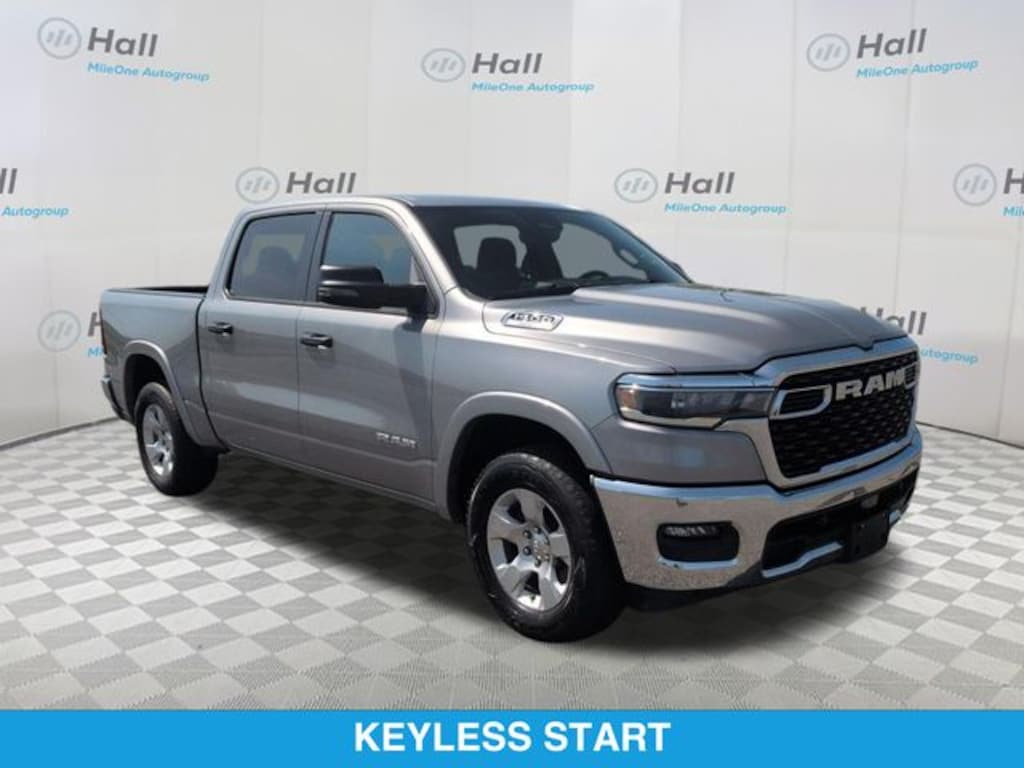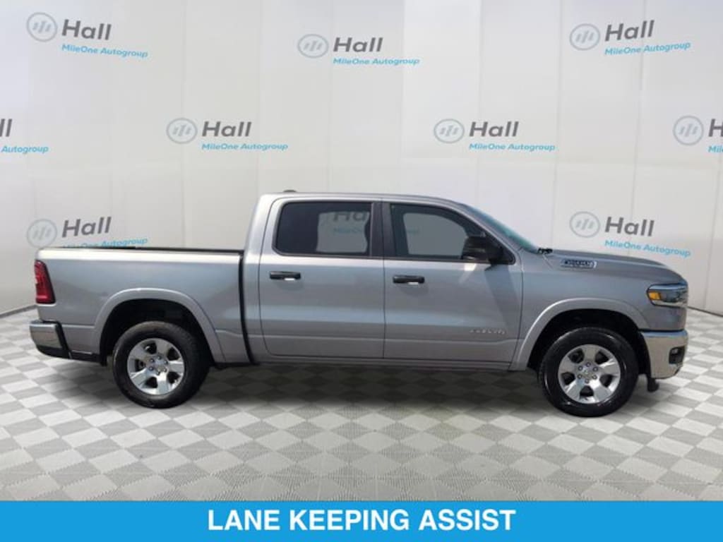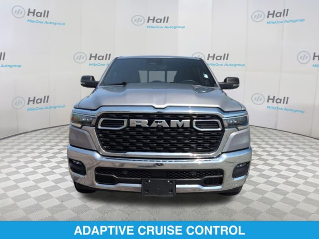 CARFAX One-Owner. Billet Silver Metallic Clearcoat 2025 Ram 1500 Big Horn/Lone Star 4WD 8-Speed Automatic 3.0L I6 We are currently offering Vehicle Purchase Home Delivery by appointment. Please contact for details., 115V Auxiliary Power Outlet, 115V Auxiliary Rear Power Outlet, 12" Touchscreen Display, 2nd Row In Floor Storage Bins, 3 Rear Seat Head Restraints, 4 Way Front Headrests, 4-Wheel Disc Brakes, 400W Inverter, 4G LTE Wi-Fi Hot Spot, 6 Speakers, 9 Amplified Speakers w/Subwoofer, ABS brakes, Air Conditioning, Air Conditioning ATC w/Dual Zone Control, Alloy wheels, AM/FM radio, Apple CarPlay, Apple CarPlay/Android Auto, Auto High-beam Headlights, Auto Power-Folding Mirrors, Auto-Dimming Exterior Driver Mirror, Auto-Dimming Rear-View Mirror, Big Horn Level 2 Equipment Group, Black Exterior Mirrors, Black Premium Power Mirrors, Brake assist, Bumpers: chrome, Cloth Bench Seat, Cluster 7.0" TFT Color Display, Compass, Configurable Drive Mode, Connected Travel & Traffic Services, Connectivity - US/Canada, Convex Wide-Angle Exterior Mirror Insert, Delay-off headlights, Driver door bin, Dual front impact airbags, Dual front side impact airbags, Electronic Stability Control, Exterior Mirrors Courtesy Lamps, Exterior Mirrors w/Heating Element, Exterior Mirrors w/Supplemental Signals, Front anti-roll bar, Front Center Armrest w/Storage, Front fog lights, Front License Plate Bracket, Front reading lights, Front Seat Back Map Pockets, Front wheel independent suspension, Fully automatic headlights, Glove Box Lamp, Google Android Auto, GPS Antenna Input, GPS Navigation, HD Radio, Heated door mirrors, Heated Front Seats, Heated Steering Wheel, Illuminated entry, Integrated Voice Command w/Bluetooth, Leather Wrapped Steering Wheel, LED Dome Lamp w/On/Off Switch, LED Footwell Lighting, Low tire pressure warning, Manual Adjust 4-Way Front Passenger Seat, Manual Folding Exterior Mirrors, Manufacturer's Statement of Origin, Media Hub w/2 Charge Only USBs, Occupant sensing airbag, Outside temperature display, Overhead airbag, Overhead console, Overhead LED Lamps, Panic alarm, ParkView Rear Back-Up Camera, Passenger door bin, Passenger vanity mirror, Power 2-Way Driver Lumbar Adjust, Power Adjust 8-Way Driver Seat, Power Adjustable Pedals, Power door mirrors, Power steering, Power windows, Premium Overhead Console, Quick Order Package 21Z Big Horn, Radio data system, Radio: Uconnect 5 Nav w/12.0" Display, Radio: Uconnect 5 W w/8.4" Display, RAM Grille Badge - Chrome, Rear 60/40 Folding Seat, Rear anti-roll bar, Rear Power Sliding Window, Rear seat center armrest, Rear step bumper, Rear Window Defroster, Remote keyless entry, Remote Tailgate Release, Security Alarm, SiriusXM w/360L, Speed control, Split folding rear seat, Steering Wheel Mounted Audio Controls, Sun Visors w/Illuminated Vanity Mirrors, Supplier Part Tracking (J-1), Tachometer, Telescoping steering wheel, Tilt steering wheel, Traction control, Trip computer, Universal Garage Door Opener, USB Host Flip, Variably intermittent wipers, Voltmeter, Wheels: 18" x 8" Cast-Aluminum Painted.